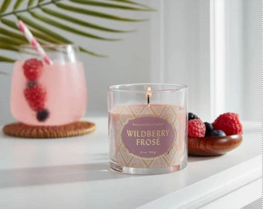 Transform your home into a tropical retreat with this Lidded Glass Jar Wildberry Frose Candle from Opalhouse. Featuring an aromatic blend of juicy pomegranate and zesty, citrusy, this lidded container candle instantly rejuvenates your senses.